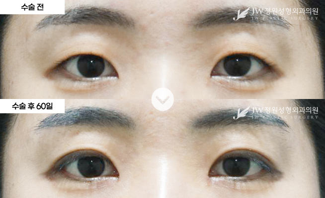 한국인에게 가장 적합한 일반적인 쌍꺼풀의 유형으로 쌍꺼풀라인이 눈 안쪽에서 시작되며 몽고주름이 심하지 않은 경우 가장 선호하는 타입 입니다. 눈 앞쪽에는 라인이 보이지 않으며, 쌍꺼풀라인의 높이와 쌍꺼풀 라인이 작습니다. 눈의 변화가 중앙에서 바깥쪽으로 갈수록 눈이 커지는 동양적으로 예쁜 눈의 효과가 있습니다. |