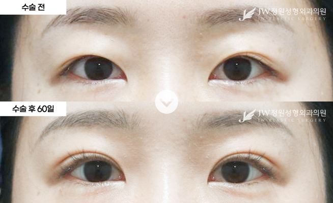 서양인에게 쉽게 볼 수 있는 라인으로 눈매가 시원스럽고 서구적으로 보일 수 있지만 동양인에게는 약간 어색해 보일 수도 있습니다. 몽고주름이 없는 경우나 몽고주름의 바깥쪽에서 쌍꺼풀이 시작됩니다. 눈의 전 길이를 통해 라인이 드러나 보이고 쌍꺼풀의 라인이 커 전체적으로 눈이 커지는 효과를 볼 수 있습니다. 일반적으로 눈이 좀 더 큰 경우에 적합한 방법입니다. |