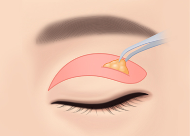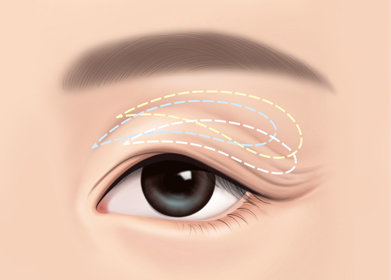 눈윗꺼풀의 늘어진 피부와 주름, 과도한 지방을 제거하여
