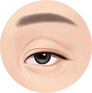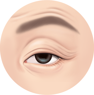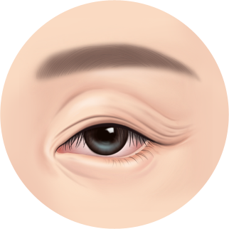 눈꼬리 부위가 덮여 눈이 처져 보이고 시야가 가려지게 됩니다.