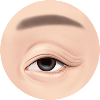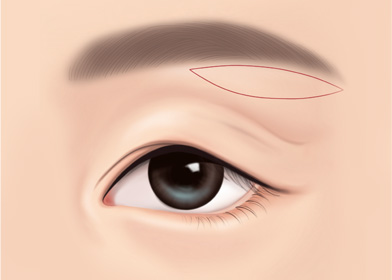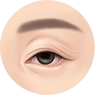 이마를 이용해 눈을 뜨려고 하기 때문에 이마의 주름을 깊어지게 하기도 합니다.