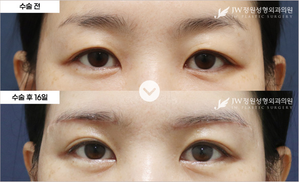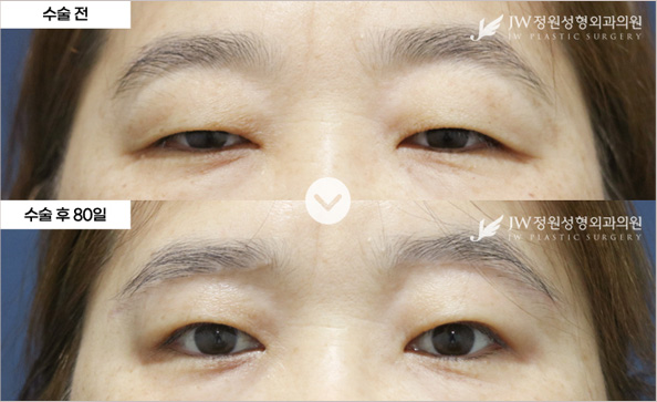 JW정원 눈썹하거상술은 처진 눈썹을 들어 올려 눈꺼풀을 좀 더 자연스럽게 개선시키며 시원한 눈매로 만들어 줍니다.