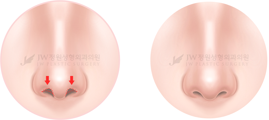 개인의 피부 특성까지 고려한 맞춤 수술로 콧날개 교정술을 시행합니다.