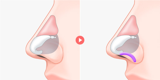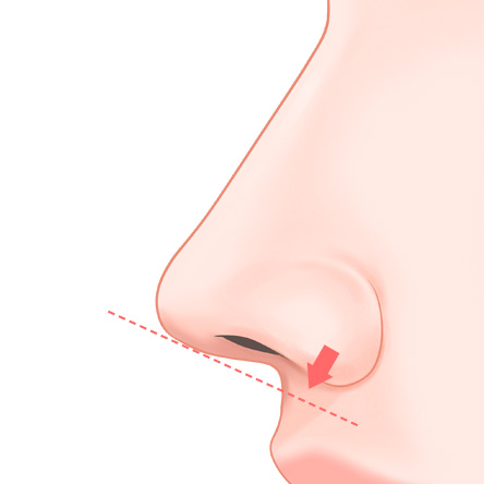 콧날개가 올라가 있으면 콧구멍이 많이 노출되어 미관상으로도 좋지 않기 때문에