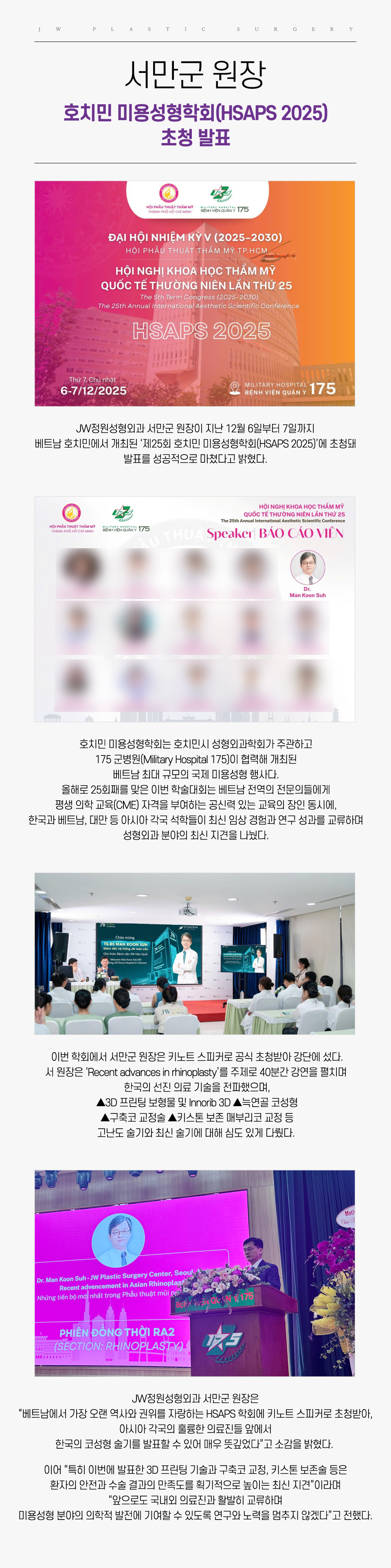 서만군 원장, 호치민 미용성형학회(HSAPS 2025) 초청 발표